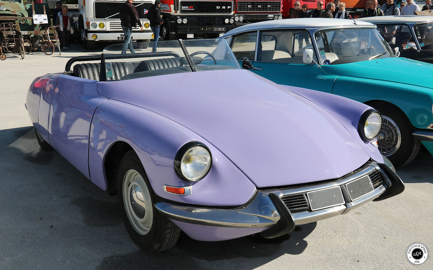 DS portant un logo IDS : un cabriolet mauve un peu maladroit